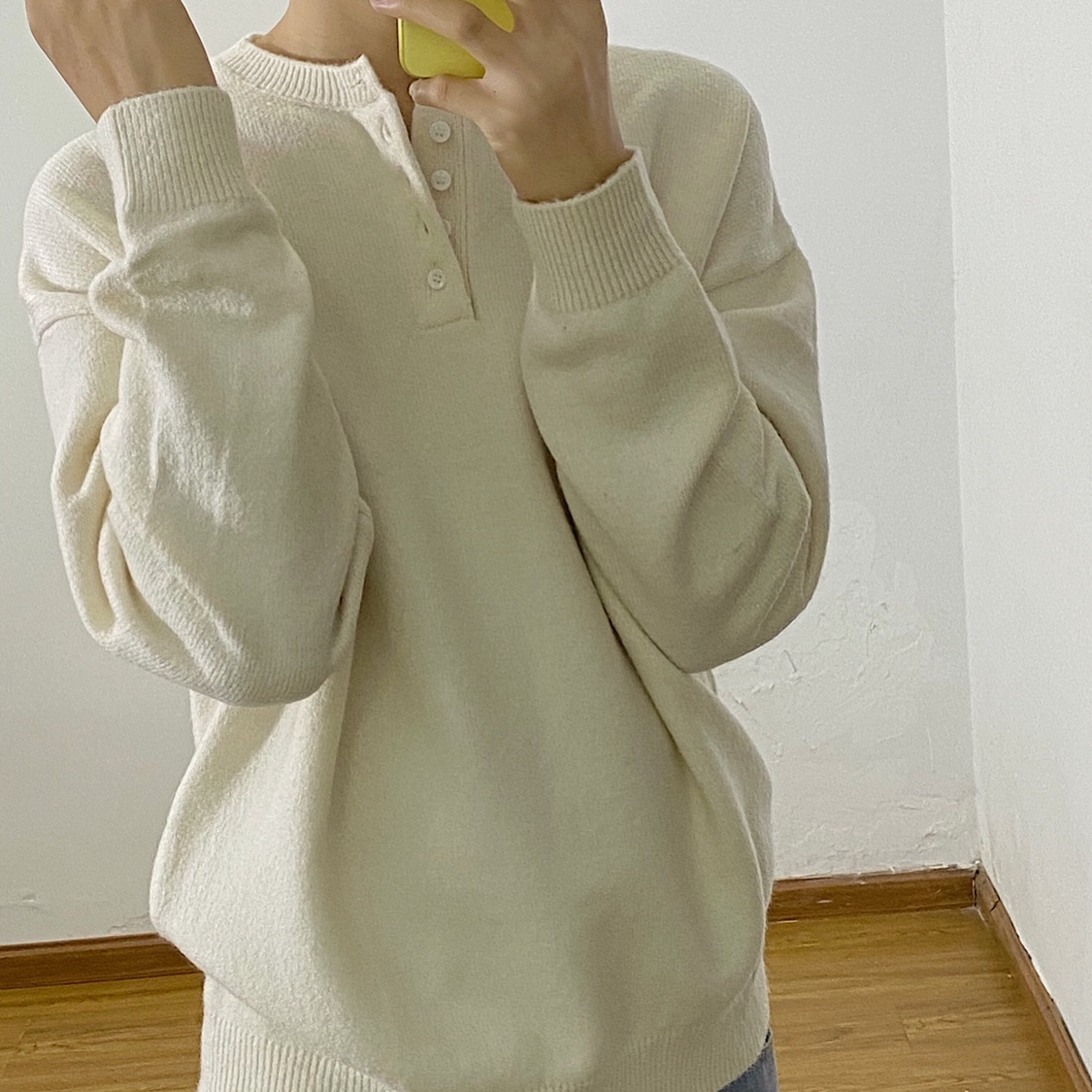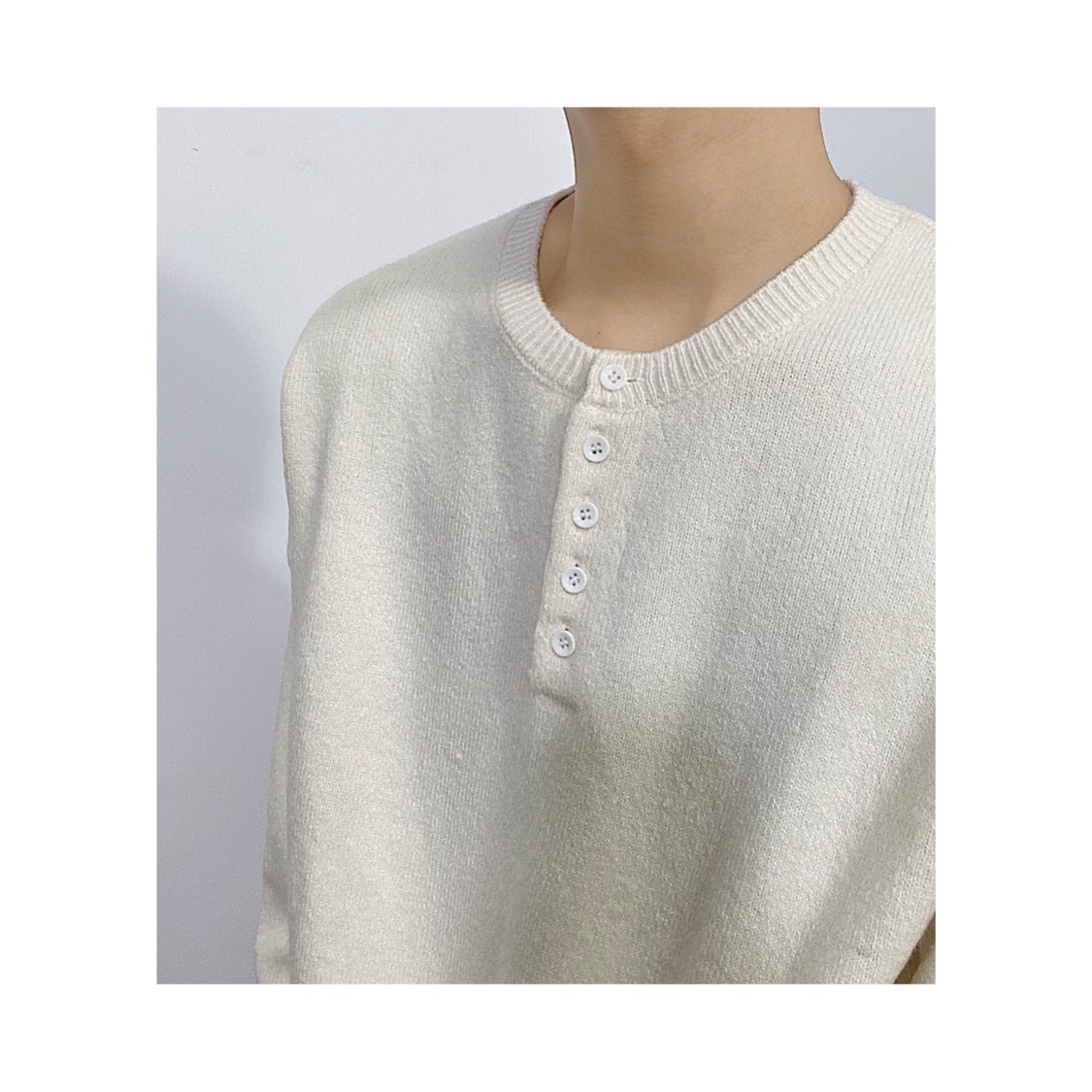Korean Style Loose Design Open Collar Placket Buckle Lazy Sweater Ins Solid Color round Neck Pullover Knitted Sweater Men