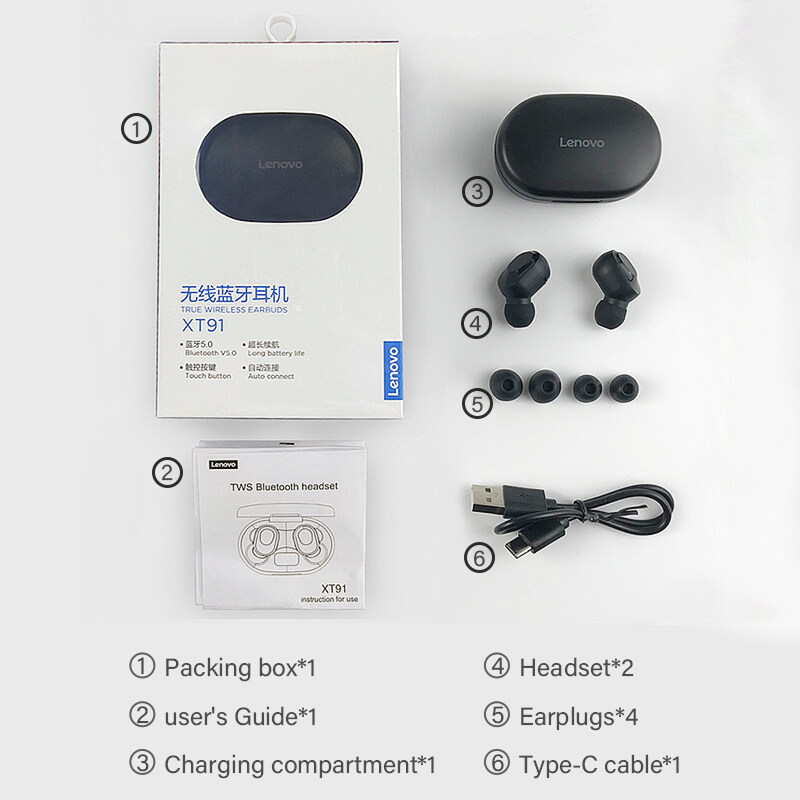 Lenovo XT91 TWS Bluetooth Earphone AI Touch Control Gaming Headset With Mic Mini True Wireless Earbuds LED Digital Display Android Mobile Phone Universal