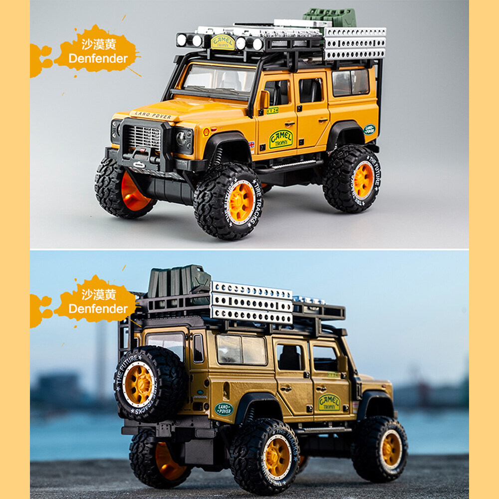 LEO 1:28 Land Rover Defender Camel trophy alloy model car big car monster truck toy for kids boys