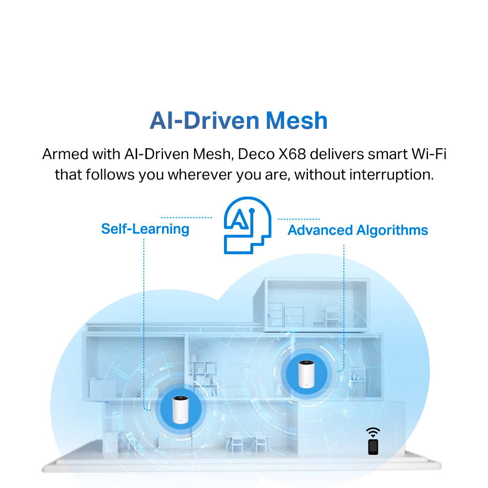 TP-LINK Deco X68 AX3600 Tri Band Gigabit OFDMA MU-MIMO WiFi 6 AI-Driven Mesh Router (Whole Home Mesh WiFi 6 System) Works with all Telcos (Supports IPTV)
