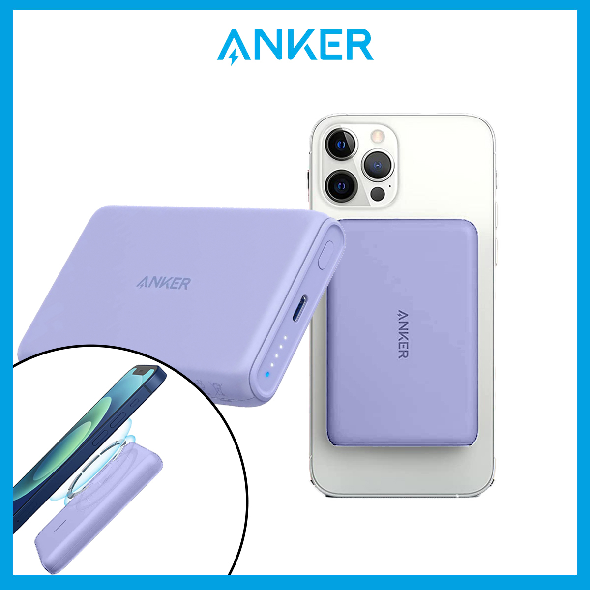 Anker Powerbank PowerCore Magnetic 5000mah Magsafe Powerbank Magsafe Charger Wireless Portable Charger Power Bank for iPhone 14/13/12
