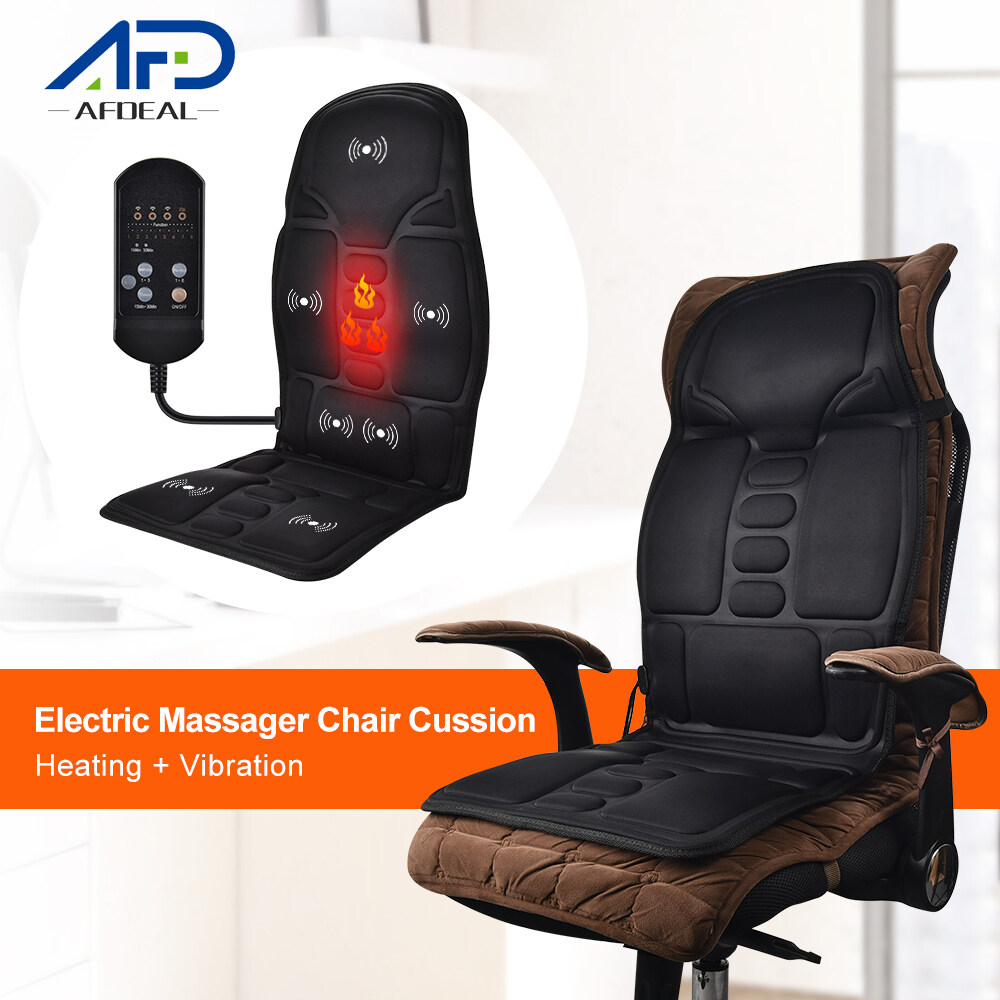 Electric Heating Vibrating Back Lumbar Neck Massager Chair Cushion Seat Pad For Car Home Office Shoulder Waist Mattress With Remote Controls Pain Relief Car Home Use