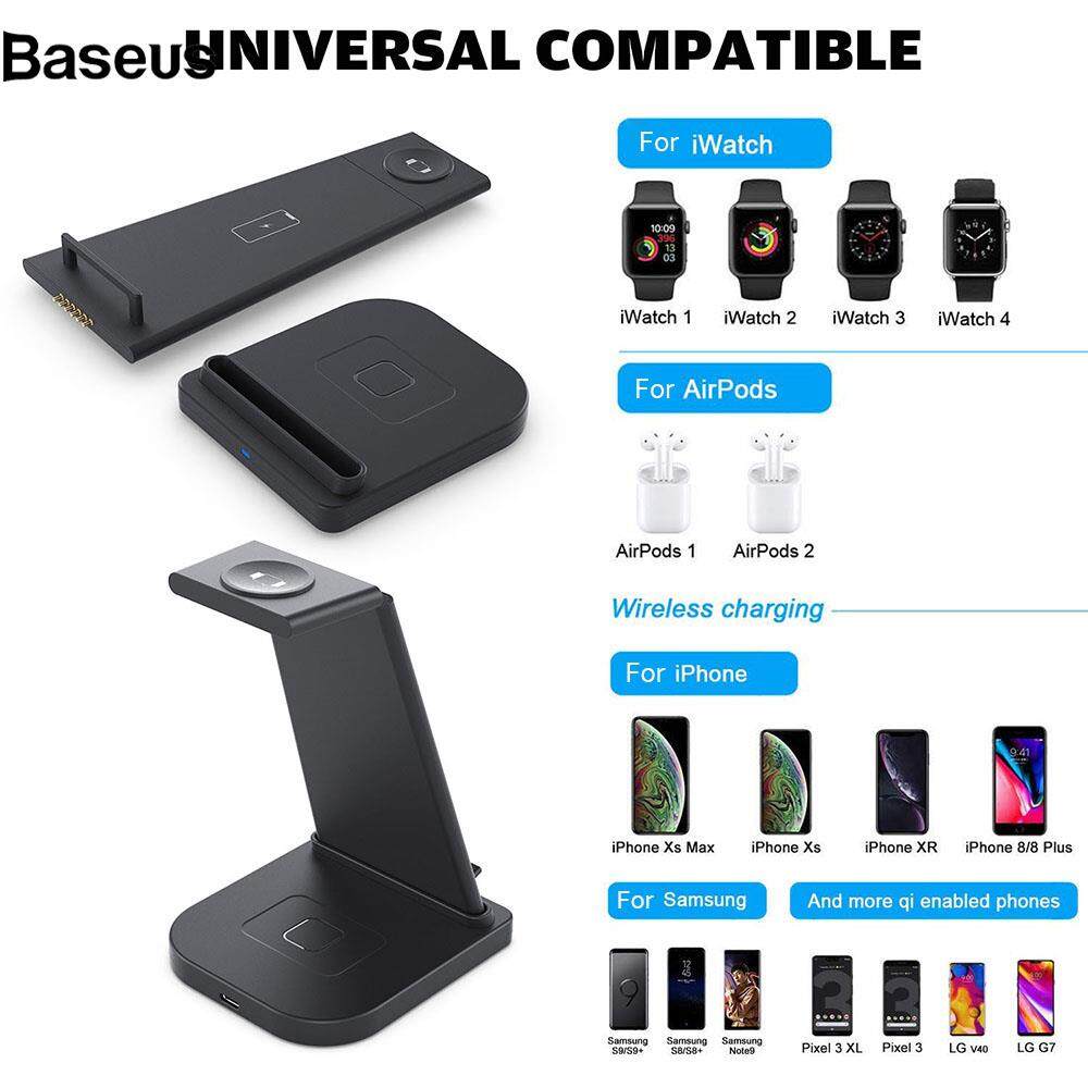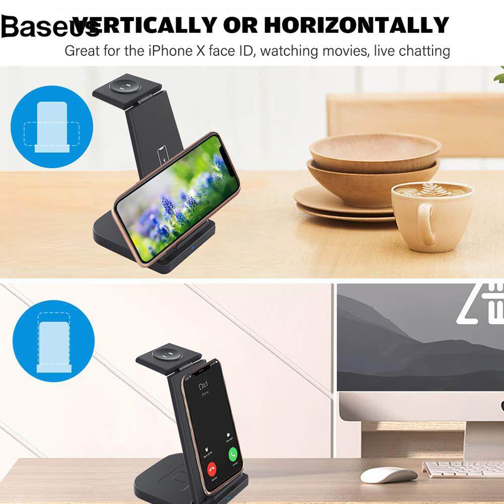 Baseus B12 Wireless Charger Stand 3 in 1 Fast Charging Station for iPhone 12 Pro Samsung Apple Watch