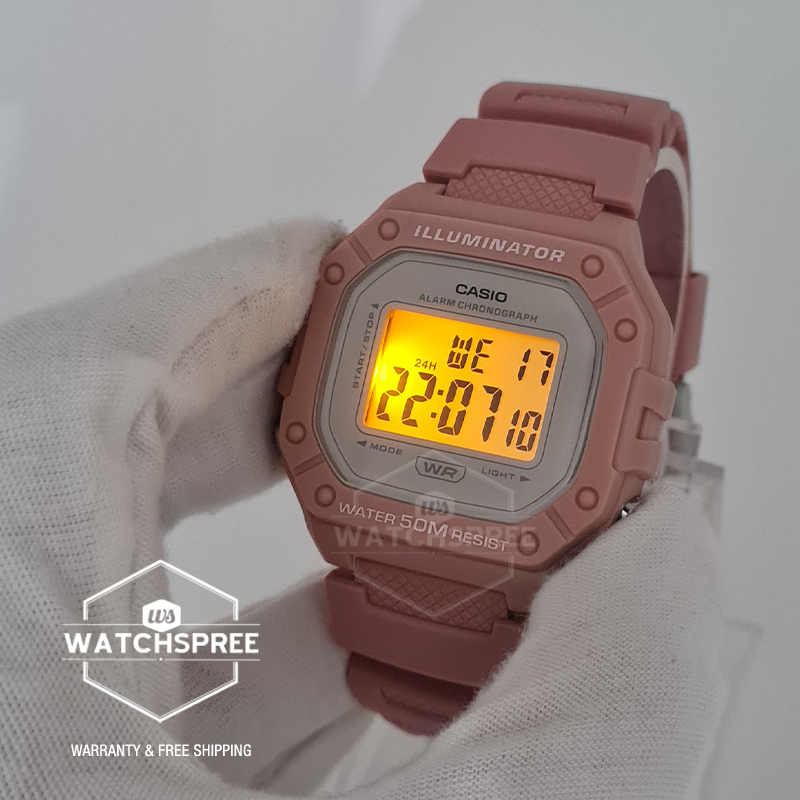 Get the iconic square face paired with resin band.This sporty design features a colorful pop to take you seamlessly from dressy to casual, whatever is on your calendar. Not just versatile, but practical, as well. With the functionality that digital delivers — LED light for easy reading in the dark, 1/100-second stopwatch, alarm, and calendar — all protected by 50-meter water resistance.