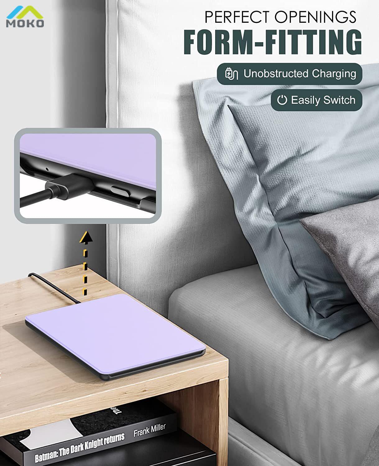 Product description: Slim lightweight hardback adds minimal bulk while protecting your Kindle Paperwhite 11. Automatically wakes or puts your device to sleep when the lid is opened and closed. The premium PU leather boosts a classy look. The no-scratch microfiber interior adds comfort and an additional layer of protection. Access to all controls and features. Device can be charged with case closed.