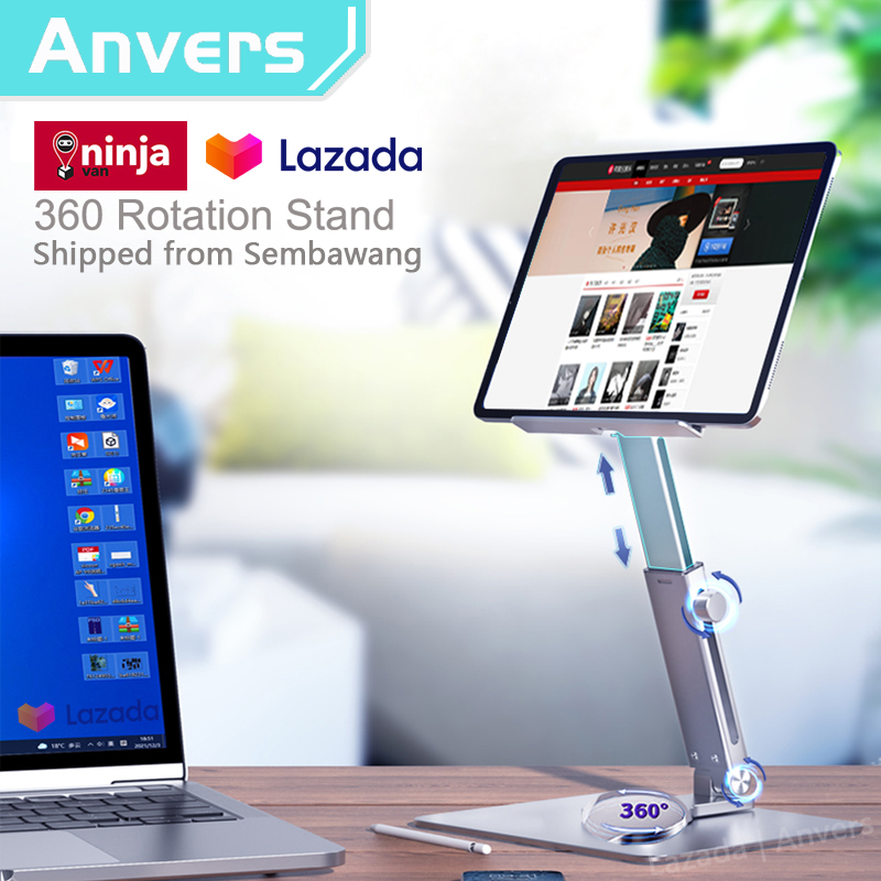 Anvers New Tablet Stand Desk Riser 360 Rotation Multi-Angle Height Adjustable Foldable Holder Dock For iPad Tablet Laptop