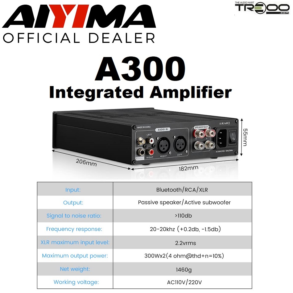 AIYIMA A300 Wireless Bluetooth Receiver/Streamer, USB Integrated Amplifier