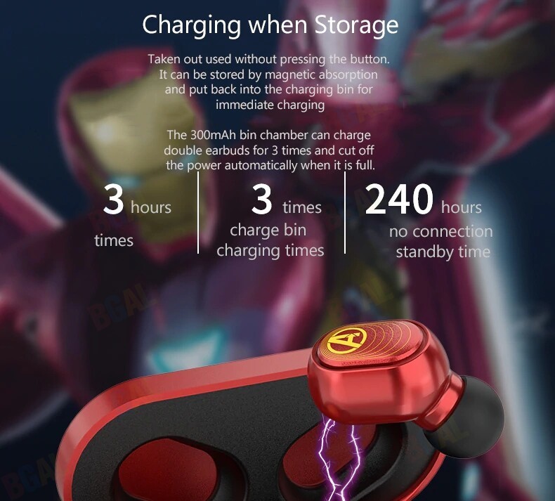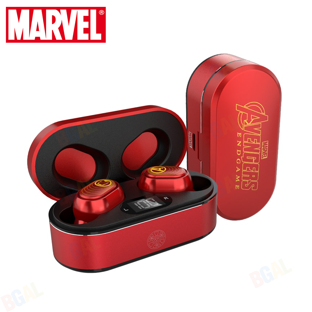 100% Authentic Marvel True Wireless Earphones Stereo Earbuds with LED Display Bluetooth V5.0 Wireless Earphones Iron Man Mini TWS Captain America Black Widow Spider Man BTMV09