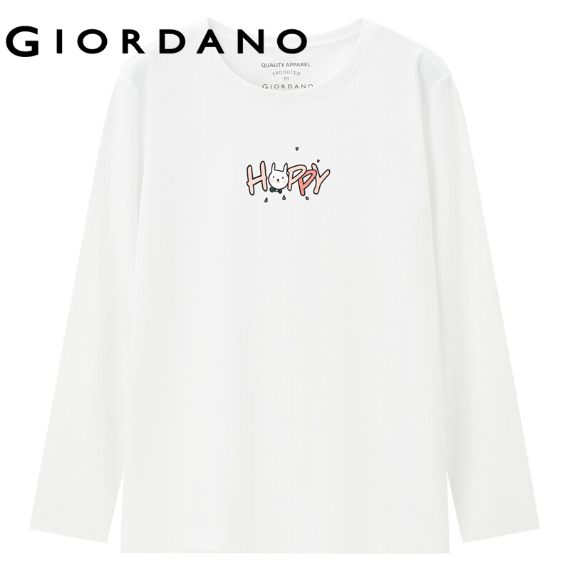 GIORDANO Women ZITA Series T-Shirts Long Sleeve Cute Cartoon Print Casual Tee 100% Cotton Crewneck Simple T-Shirts 99392146