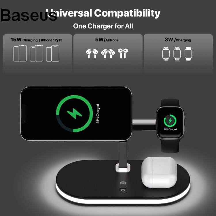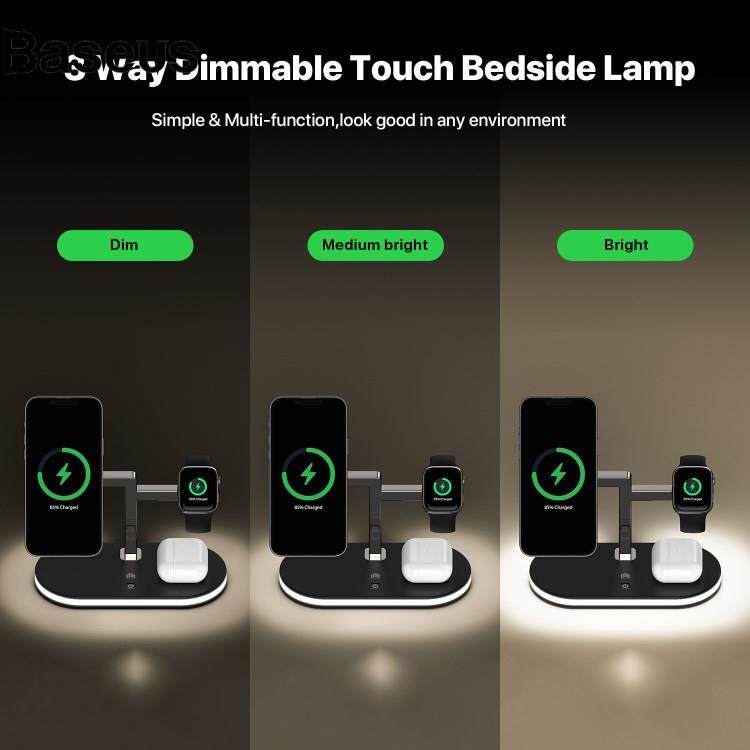 Baseus UD23 3 in 1 Magnetic Charging Station 15W Max Wireless Charger with Dimmable Bedside Lamp for Mobile Phone / Smart Watch / Earphones