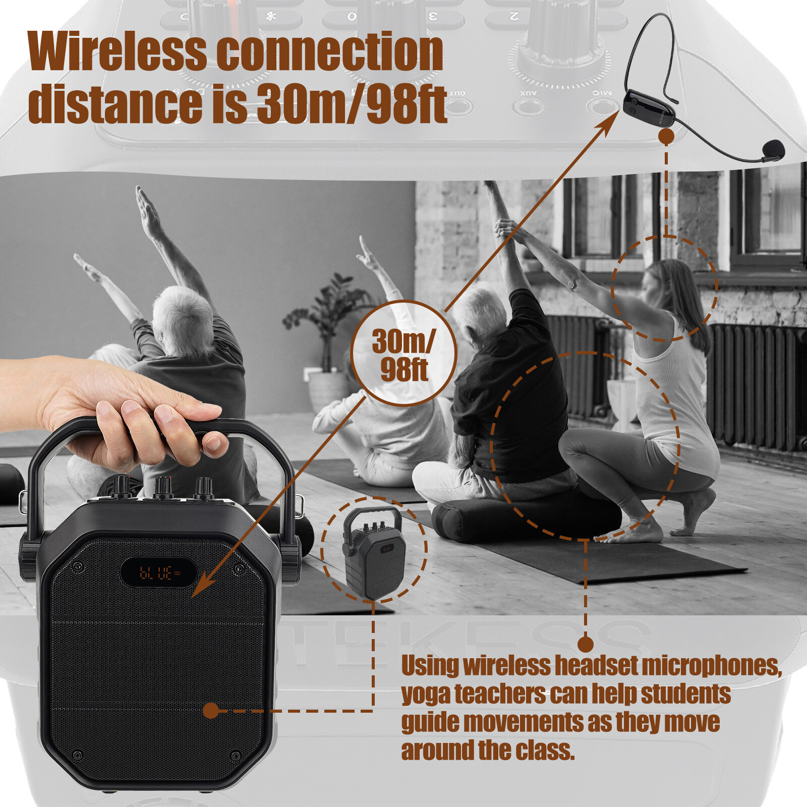 In order to avoid howling, the wireless head-mounted microphone needs to keep a distance of 30cm from the voice amplifier when in use.
