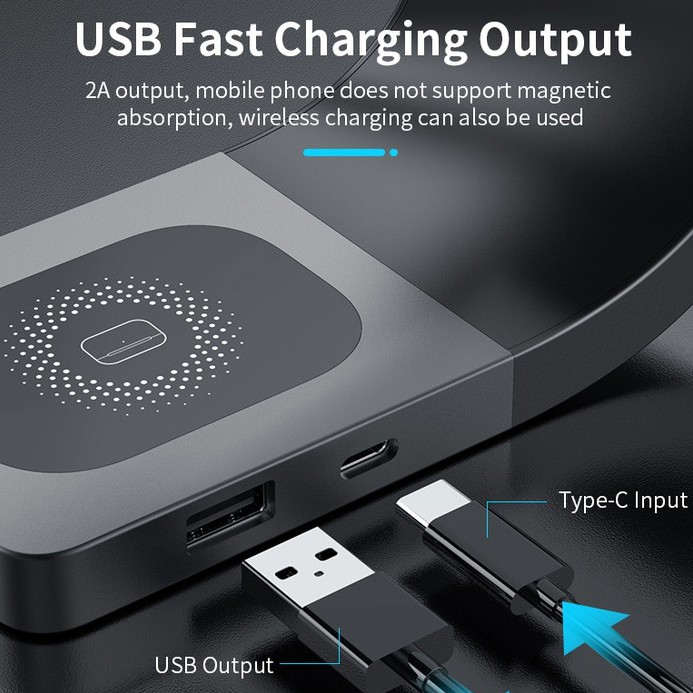 • 【Compatibility】Charger Stand be appropriate for Wireless Charging iPhones AirPods, Apple Watch, The base also has two charging ports (Type-C/Usb) that can charge other devices