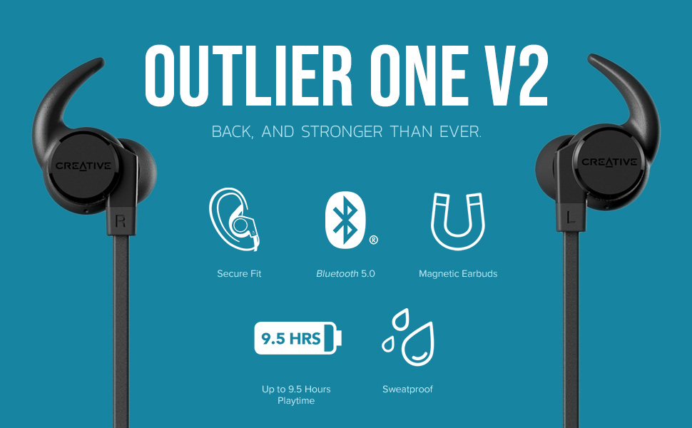 BACK, AND STRONGER THAN EVER All thanks to our users and community, the all-new Creative Outlier ONE V2 is back with improved features based on your feedback! Enjoy up to 9.5 hours of high-definition audio with seamless connection via the latest Bluetooth® 5.0 technology.