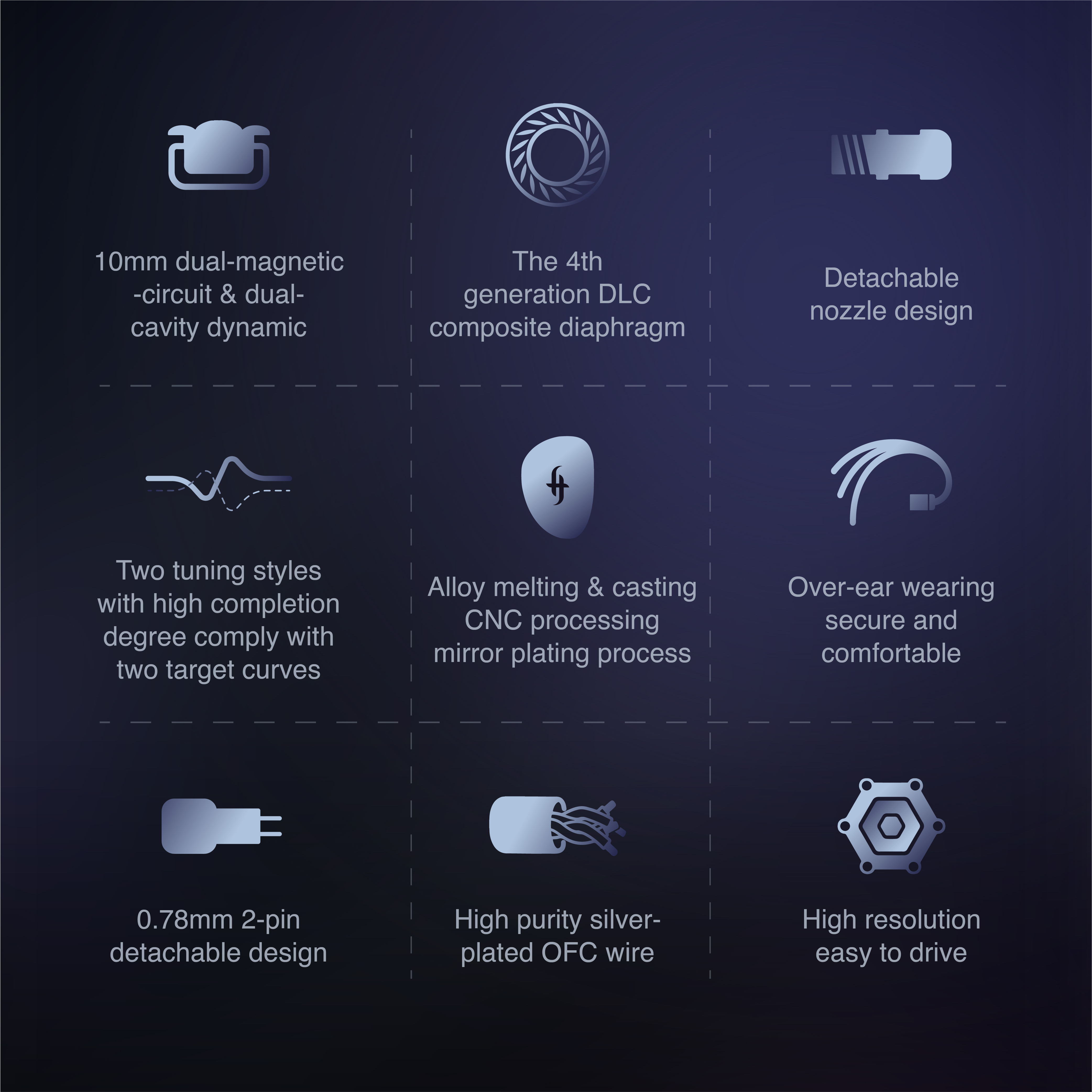 • ♬【All Metal Cavity with Mirror Plating Process】The headphone cavity is processed through high-density alloy metal melting & casting and CNC fine engraving. The body is sturdy and durable. The inner surface is subtle uneven, which can effectively suppress standing wave and provide a clear sound floor. Complemented by mirror plating technology, the earphone body is elegant as an art piece.