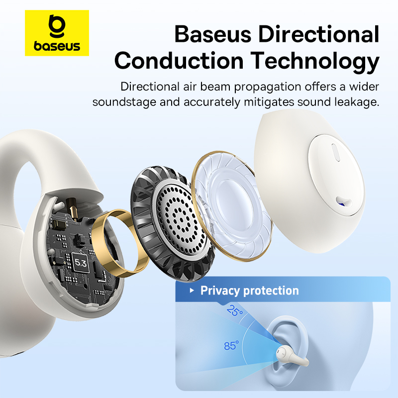 Baseus AirGo AS01 Clip On Open-Ear Bluetooth Wireless Earbuds With Dual ENC Mics Ultra-Lightweight Earphone