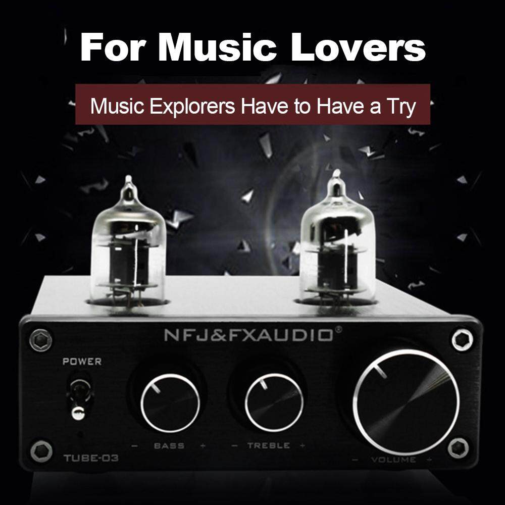 FX-AUDIO TUBE-03 Mini HiFi Audio Preamplifier 6K4 Vacuum Tube Amplifier Buffer Treble Bass Adjustment RCA Preamp Black EU Plug