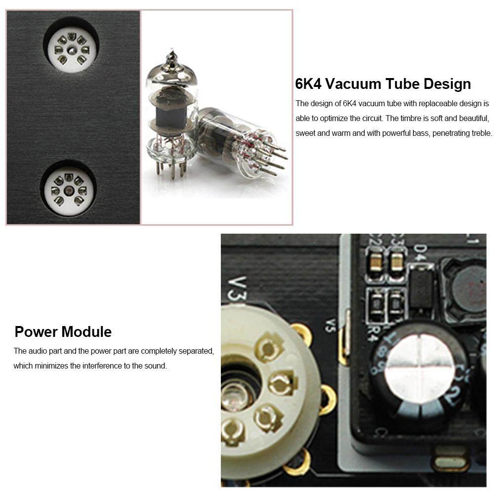 With wide applied range and practicability, this preamplifier can fit the majority of active speakers and power amplifiers in the market. The replaceable 6K4 vacuum tubes design can optimize the circuit. The audio part and the power part are completely separated, which minimizes the interference to the sound. The timbre is soft and beautiful, sweet and warm and with powerful bass, penetrating treble. With treble and bass adjustment, single power supply, it's small and portable, brings you much fun and convenience. Using high-quality aluminum alloy housing with gold-plated connectors, it's durable and high-performance.