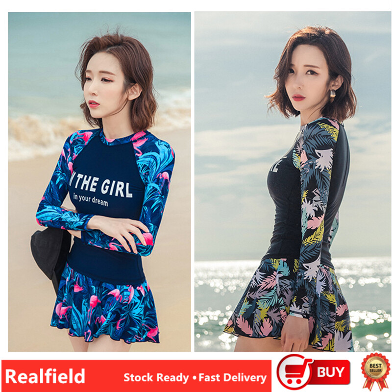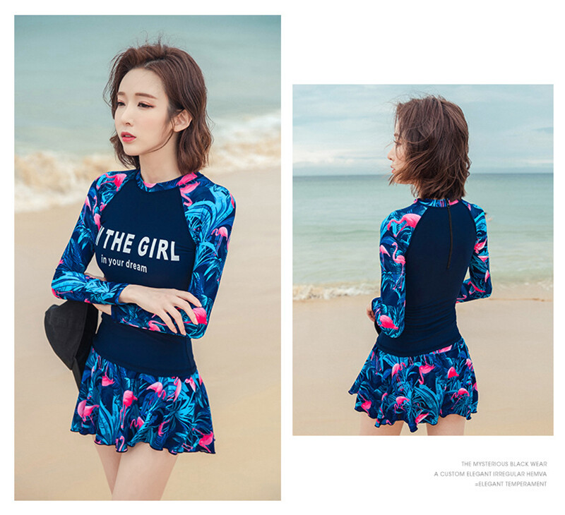 Luoke Letter Floral Print Women Fashion Long Sleeve Two Pieces Suits Sun-resistant Swimsuit swimming suit