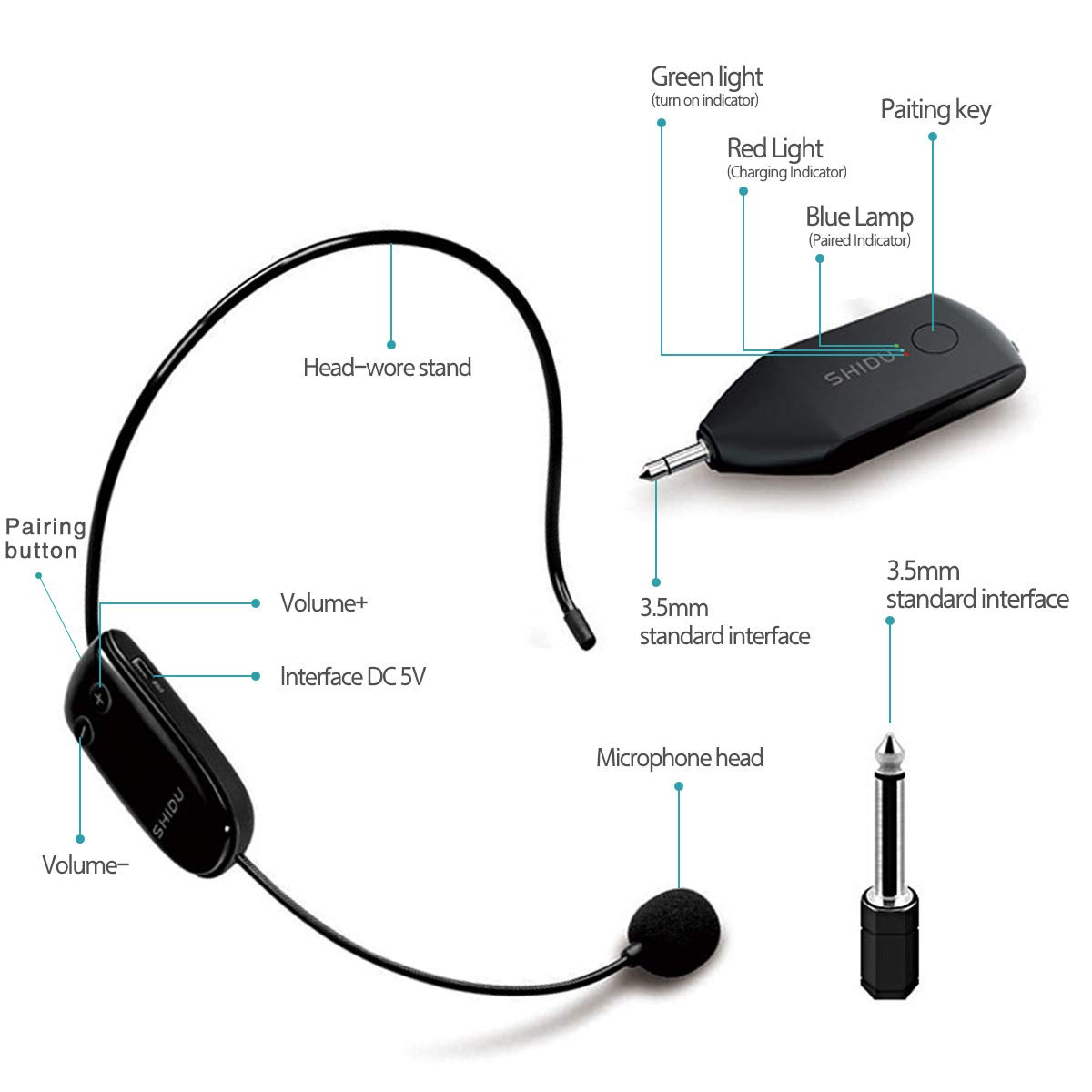 SHIDU U8 Upgraded UHF Wireless Head Headset Microphone 2 In 1 Handheld Portable MIC Voice Changer Amplifier For Speech 3.5mm Plug Receiver