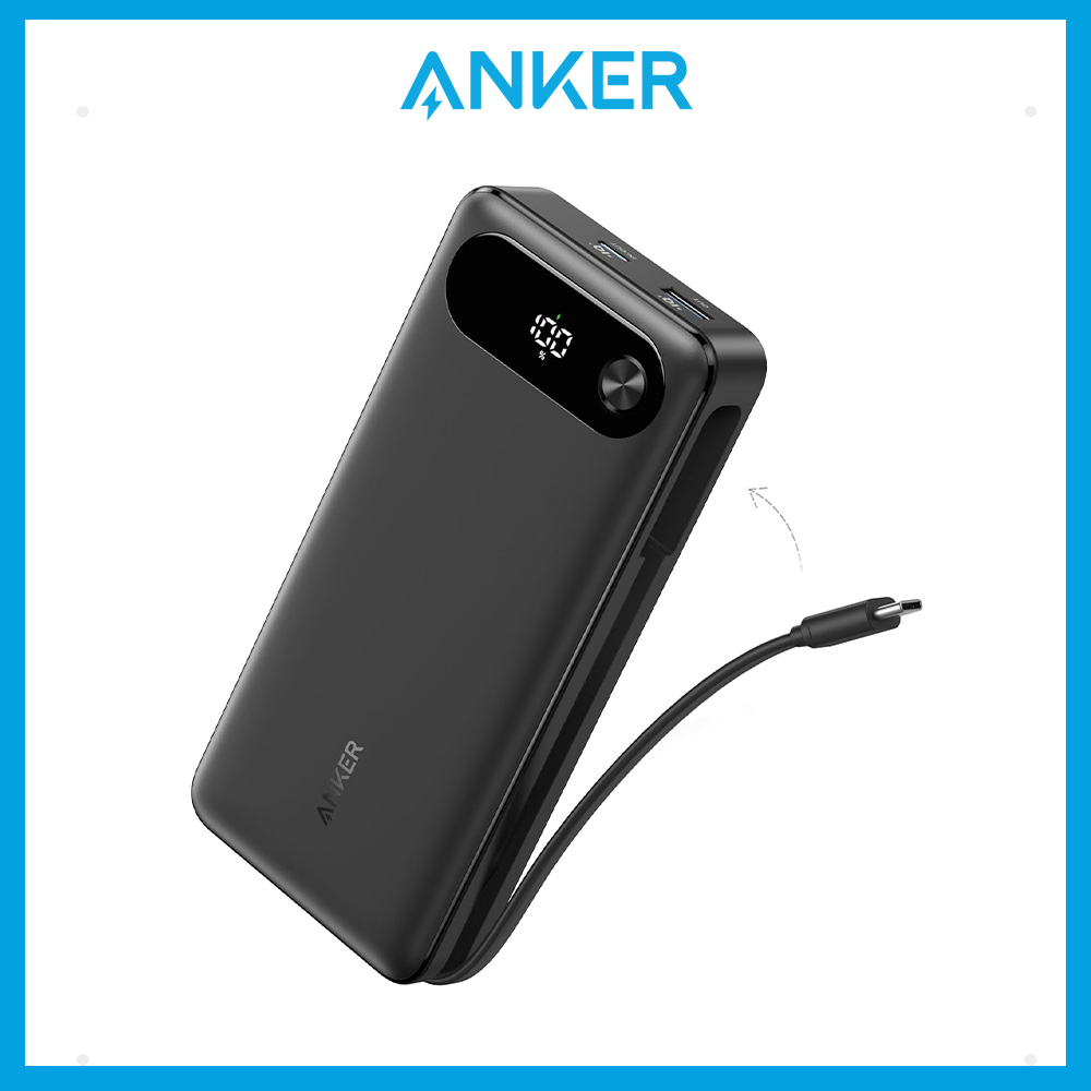Anker PowerBank, 20,000mAh Portable Charger with Built-in USB-C Cable, 87W Max Fast Charging USB C Power Bank A1383