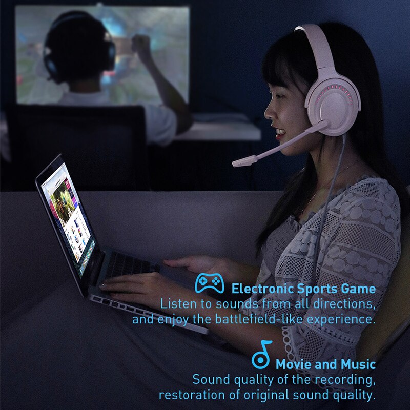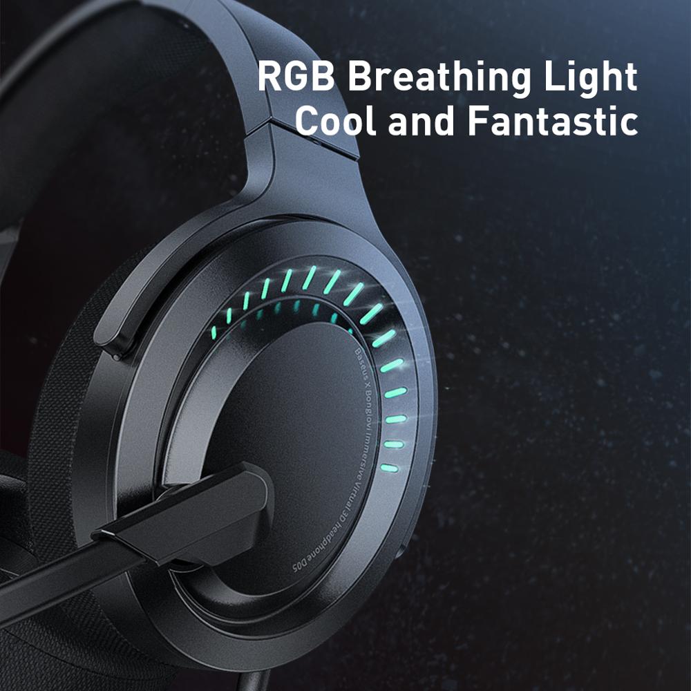 Baseus D05 Gaming Headphone , Colorful RGB Breathing light Headphones Adjustable Game / Music Mode Headsets with HD Microphone