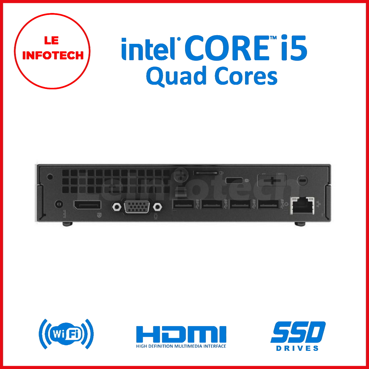 Dell Optiplex 3020 Micro Desktop Quad Core Intel i5-4590T 8/16 GB RAM New 256/512 GB SSD Win10 Pro Used Free USB+WiFi DisplayPort to HDMI One month warranty - LeInfotech