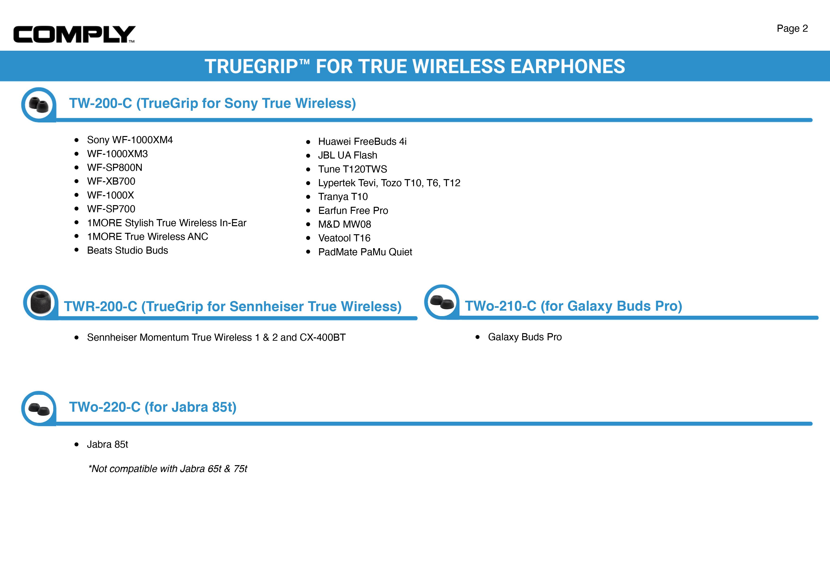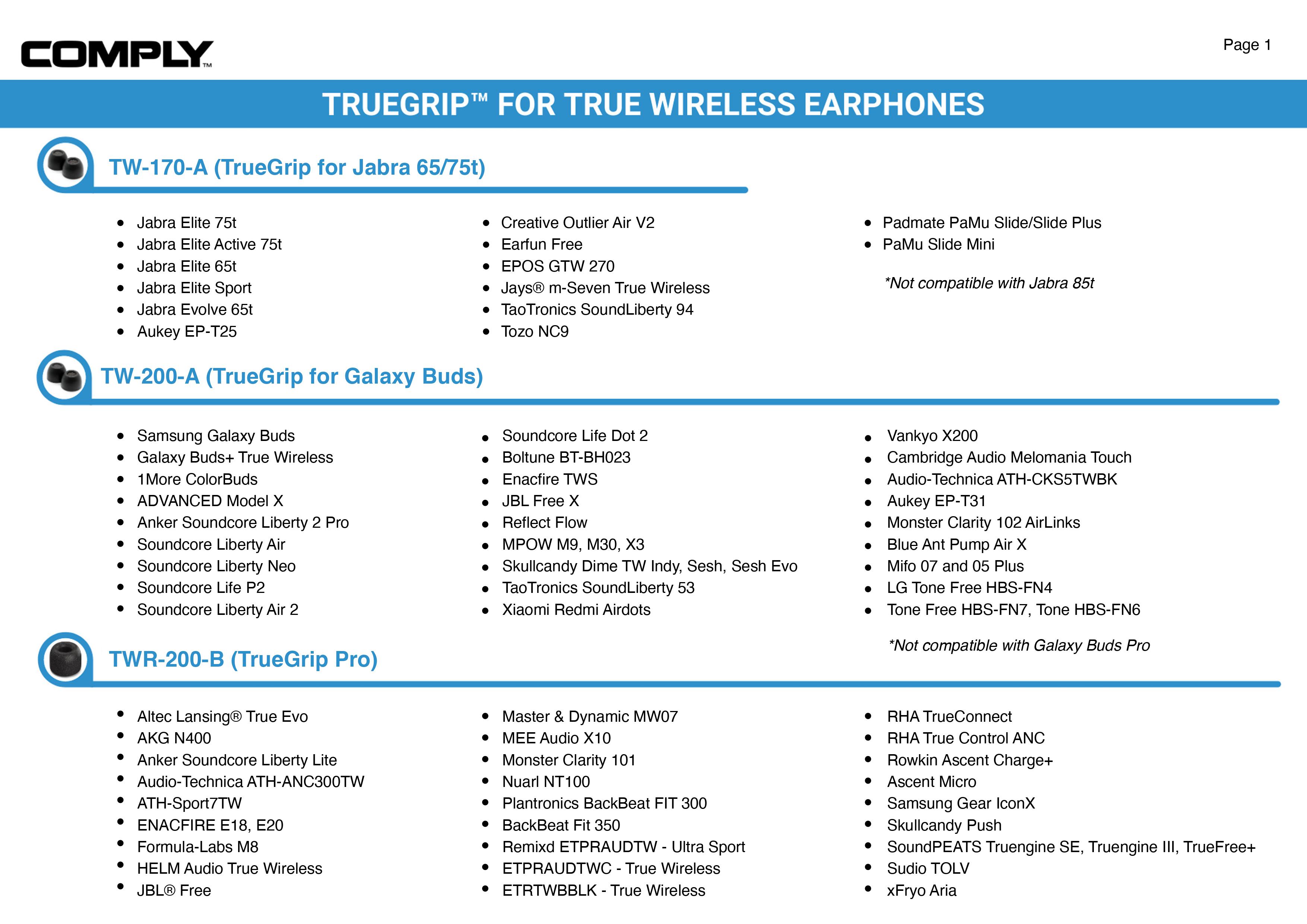 Comply TrueGrip Pro TWR-200-B Memory Foam Earphone Tips for True Wireless Earbuds(3pairs, Medium)