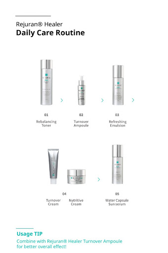 REJURAN® is optimized cosmeceuticalfor moisturizing, anti-oxidant, nutrition and calming effects that are essentially needed for the healing of damaged and aged skin.